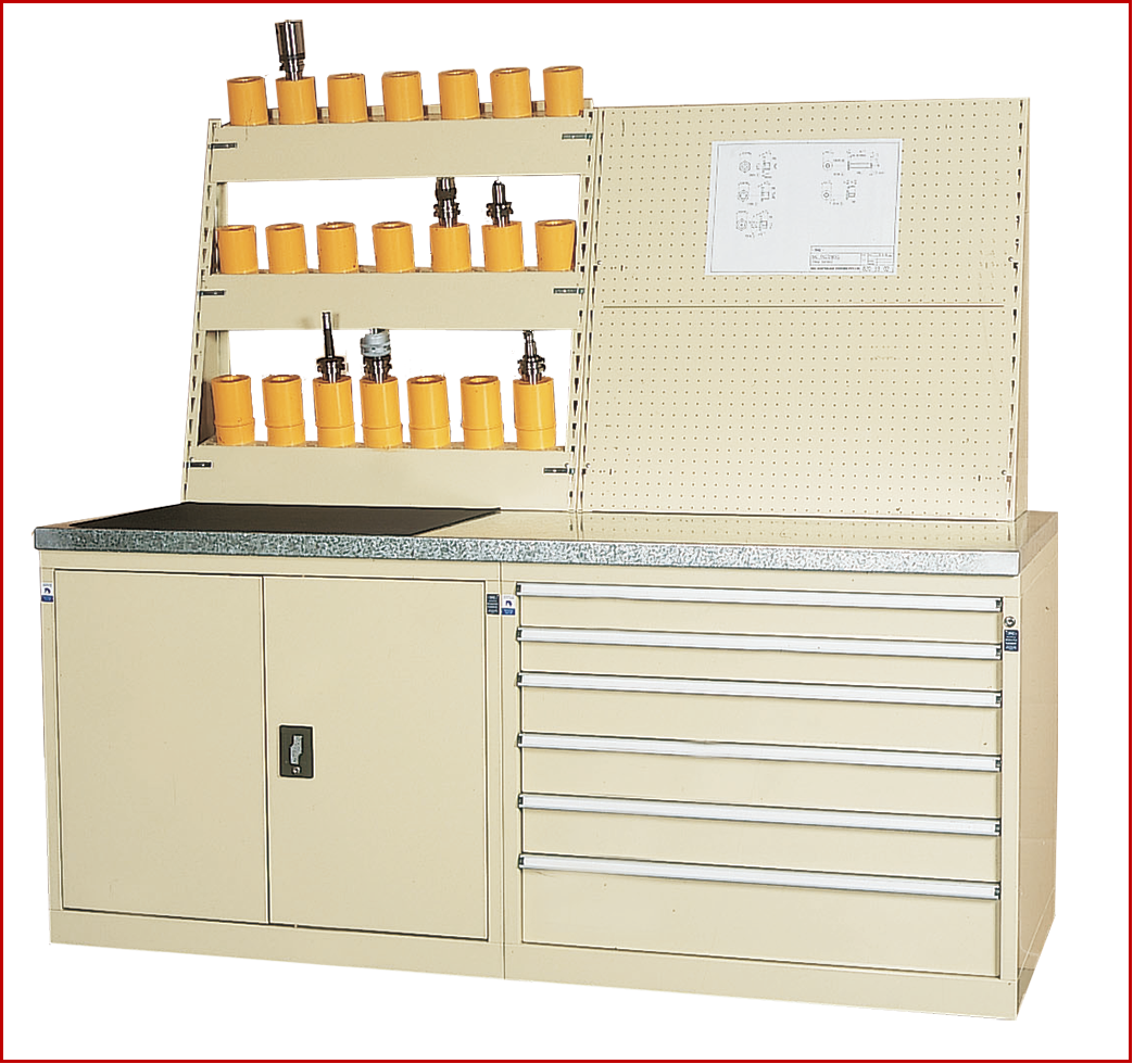 A BAC Workbench can be configured with CNC Tool Storage Consoles above the benchtop, placing the tools in an easy to see and easy to reach location.